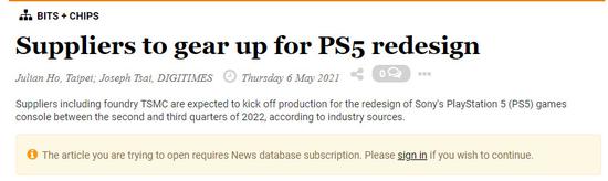 台湾媒体Digitimes,他们声称像是台积电这样的半导体代工厂将在2022年第二季度和第三季度开始生产重新设计的PS5主机。