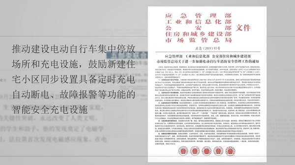 这一背景下,加强电动车消防安全管理,鼓励智能充电设施建设,推行集中充电,已成为社会重点工作。最近几年,国家对社区安全充电管理逐渐强化,2017年12月底,公安部下发了《关于规范电动车停放充电加强火灾防范的通告》;2018年5月,国务院安委会办公室于下发了《关于开展低速电动车消防安全综合治理工作的通知》;2019年9月,应急管理部等5部委联合发布了《关于进一步加强低速电动车消防安全管理工作的通知》,明确要求“推动建设电动自行车集中停放场所和充电设施,鼓励新建住宅小区同步设置具备定时充电、自动断电、故障报警等功能的智能安全充电设施。”