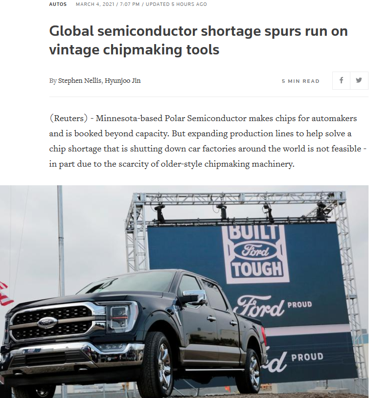 据路透社报道,尽管全球性的车用芯片短期已经让部分汽车厂陆续关部一些产线并减产,但美国一家汽车芯片制造商,目前订单仍超过负荷。