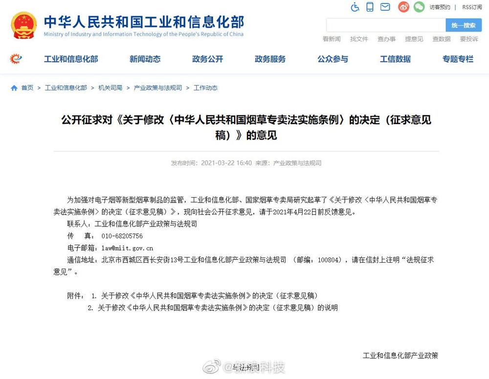 ”此次修改主要是落实党中央、国务院关于推进电子烟监管法治化的要求,