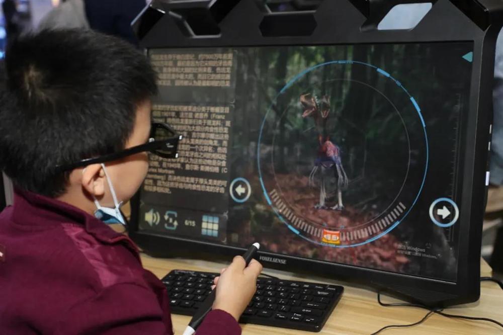 “我在恐龙乐园看霸王龙!”恒信东方VR未来教室的展台上,一位正在体验的小朋友激动地叫起来。恒信东方讲解员向《中国电子报》记者介绍道,这位小朋友正在体验的是针对学龄前儿童设计的走进远古世界的VR课程内容,是恒信东方此次展出的VR未来教室九大类课程中的一节。为幼儿设计的VR互动体验时长每次在10~15分钟,教师可以通过平板电脑终端监控多台设备的使用进度。