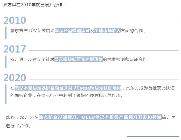 BOE(京东方)与德国莱茵T?V大中华区(以下简称“T?V莱茵”)达成战略合作,双方进一步深化在屏幕特性标准制定、显示应用场景开发与推广方面的合作。