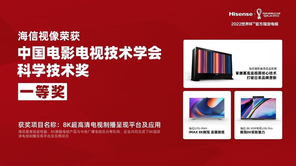 中国电影电视技术学会科学技术奖是经国家科学技术奖励办公室和国家科学技术部批准设立的奖项,主要奖励在广播影视技术领域的科学研究、科技开发创新、科技成果推广应用,以及实现产业化方面取得卓著成绩或突出贡献的组织和个人,从而促进影视科学技术进步,推动我国影视事业发展。据悉,海信视像是仅有一家荣获该奖项一等奖的电视企业。