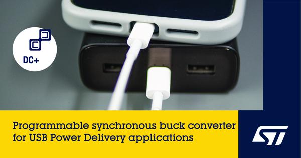 以高能效的同步变换拓扑为特性,意法半导体同步降压DC/DC变换器STPD01具有数字编程功能,适合很大功率60W的USB Power Delivery (PD)供电应用。