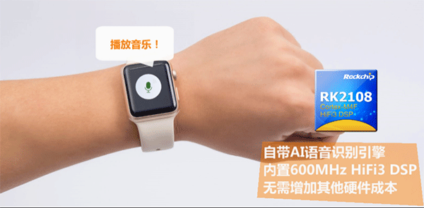 RK2108D内置600MHz主频的HiFi3 DSP,提供优质的语音信号处理能力。自带AI语音识别引擎,无需额外增加其他硬件,即可实现AI语音识别功能,更具成本优势。