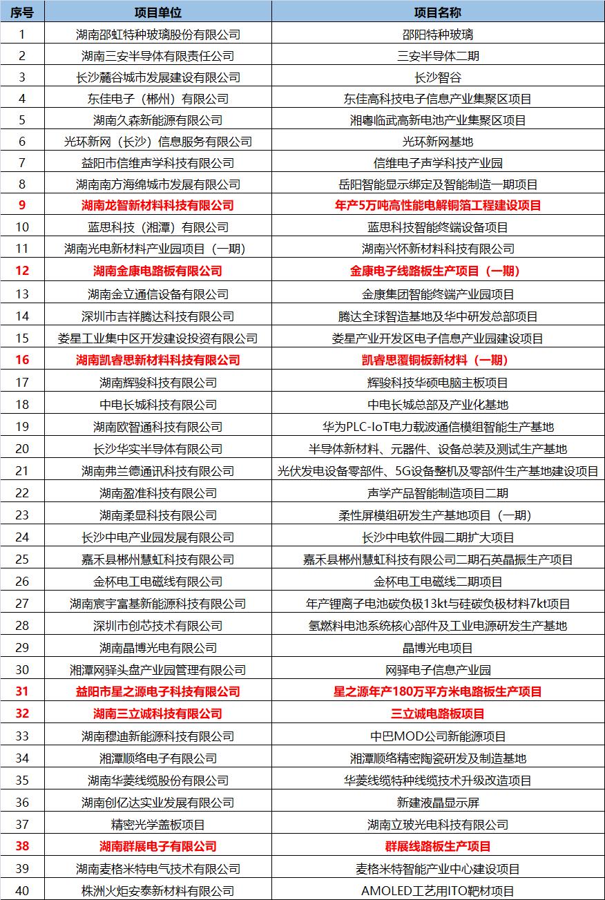 湖南省工业和信息化厅发布了《2022年湖南省电子信息制造业重点项目名单》。其中,4个PCB项目及2个PCB相关项目入选。