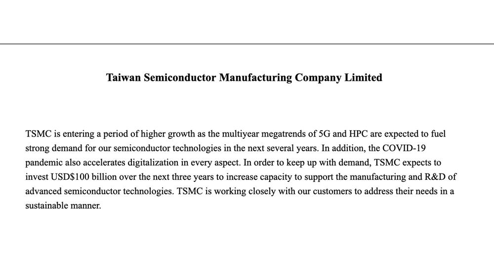 4月1日,台积电在 发布消息,宣布未来3年内将投资1000亿美元,以增加芯片产能。台积电表示,未来3年的投产行为主要是为了扩大两方面能力,分别是半导体制造和新技术的研发能力。赛迪智库集成电路产业研究所分析师张天仪告诉《中国电子报》记者,台积电此次的扩产计划会兼具成熟制程与先进制程,所以台积电在两方面的产能都会得到提升。